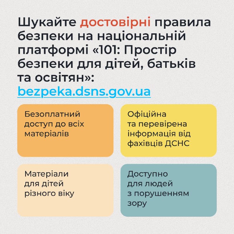 Щоб батькам, дітям і освітянам було простіше знаходити достовірну та структуровану інформацію в одному місці МВС, ДСНС спільно з ЮНІСЕФ запустили національну вебплатформу «101: Простір безпеки для дітей, батьків та освітян».