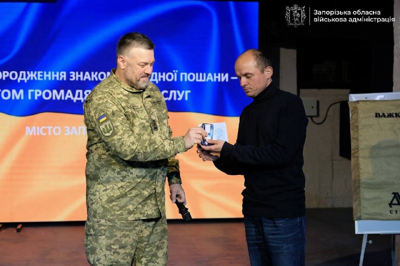 Такі нагороди отримуватимуть волонтери по всій країні. У Запоріжжі відзнаки активістам вручив командир батальйону безпілотних систем 128-ї окремої важкої механізованої бригади «Дике поле» підполковник Олег Тягнибок.