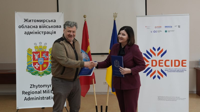 Сьогодні ми офіційно закріпили цей старт підписанням меморандуму між Житомирською обласною військовою адміністрацією та проєктом DECIDE. Також разом із заступницею міністра освіти і науки Надією Кузьмичовою, менеджеркою проєкту DECIDE в Україні Валентиною Полторак та очільниками громад обговорили, як ця співпраця підсилить реформу профільної середньої освіти.