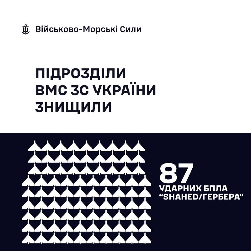 🇺🇦⚓ВМС ЗС України знищили 87 «Шахедів/Гербер»