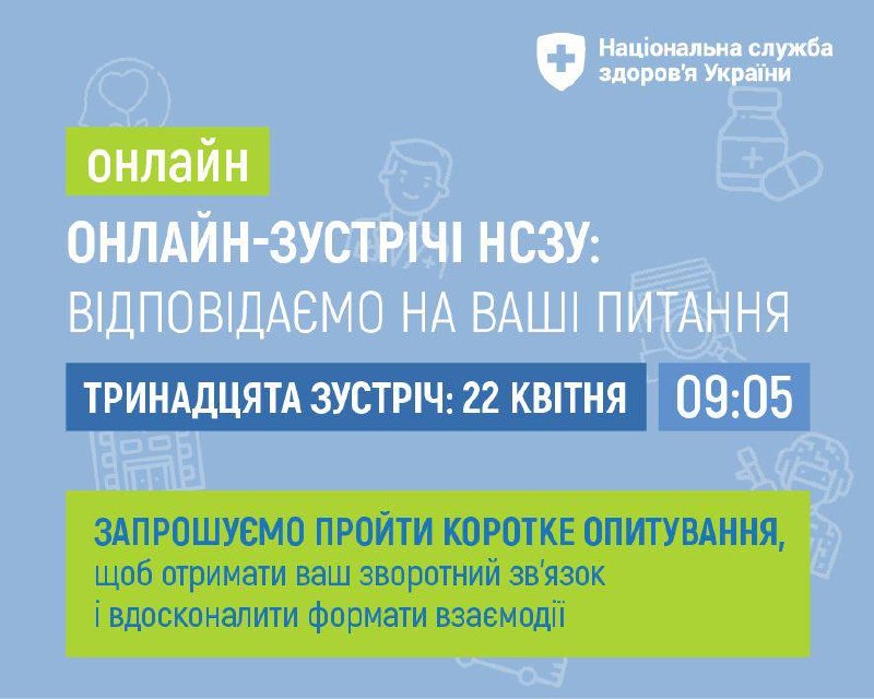 🟢 Також запрошуємо пройти коротке опитування. Для нас важливо отримати зворотний зв’язок щодо онлайн-зустрічей: наскільки вони корисні у вашій роботі, чи допомагають знаходити відповіді та в яких напрямах потрібні додаткові роз’яснення. Це дозволяє краще враховувати ваші запити і вдосконалювати формат взаємодії.