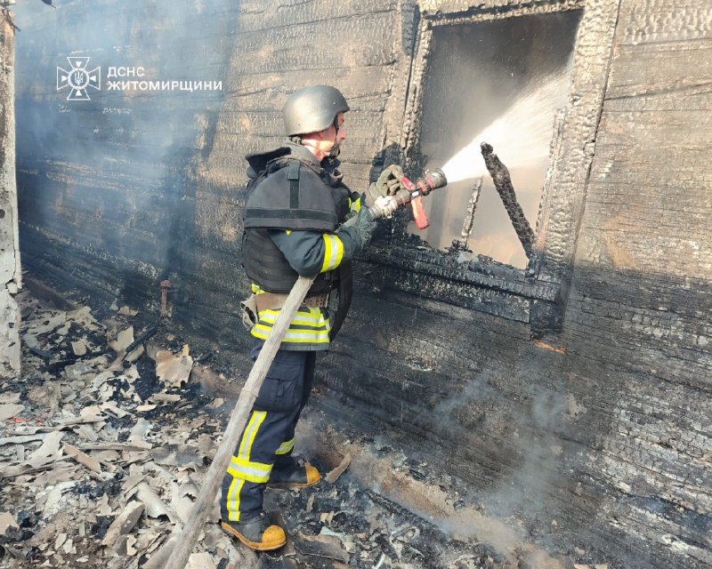 #Житомирщина: російські війська завдали удару по цивільній інфраструктурі та житловим будинкам, обійшлося без постраждалих 17.04.2026, П’ятниця | 11:47 Автор допису: Державна служба з надзвичайних ситуацій #Житомирщина: російські війська завдали удару по цивільній інфраструктурі та житловим будинкам, обійшлося без постраждалих Унаслідок ворожого удару загорілися будинок та господарча споруда. Рятувальники пожежу ліквідували. Джерело Друк / PDF