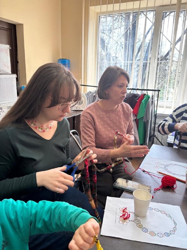 Жінки та дівчата разом із фахівцями Новомиколаївської сільської ради створювали унікальні намиста, використовуючи дерево, тканину та нитки. Кожен виріб став відображенням індивідуальної фантазії та творчого підходу учасниць.