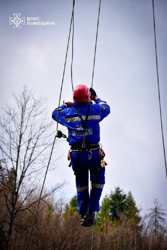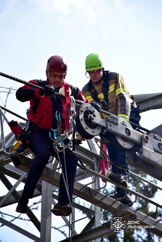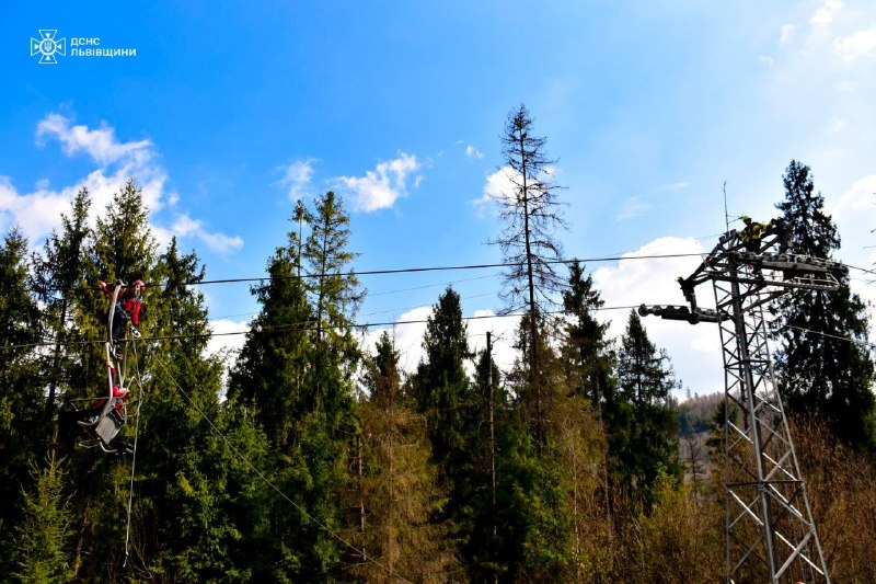Рятувальники відпрацьовували ключові сценарії: ▪️ евакуацію людей із крісельного підйомника; ▪️ роботу на висоті; ▪️ спуск постраждалих із використанням спецспорядження.