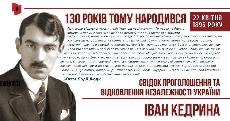 СВІДОК ПРОГОЛОШЕННЯ ТА ВІДНОВЛЕННЯ НЕЗАЛЕЖНОСТІ УКРАЇНИ: 130 РОКІВ З ДНЯ НАРОДЖЕННЯ ІВАНА КЕДРИНА