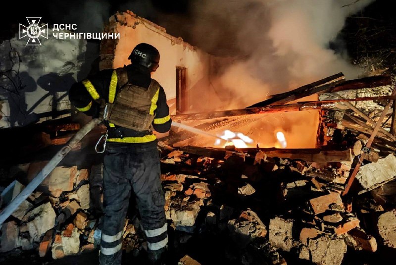 Корюківський район. Увечері ворог атакував дронами Корюківку. Уночі був удар по дитячому оздоровчому комплексу у Менській ТГ – комплекс не працював. Там загорілася господарча будівля.