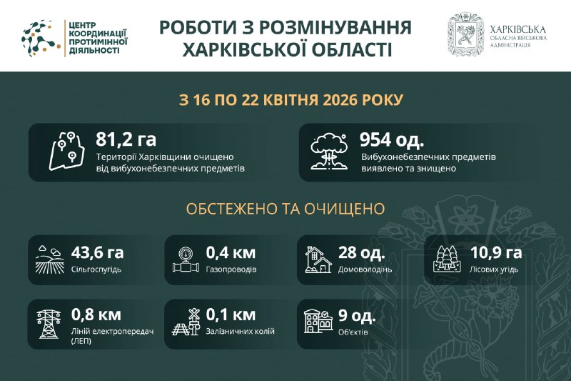 📍За минулий тиждень на Харківщині обстежили: