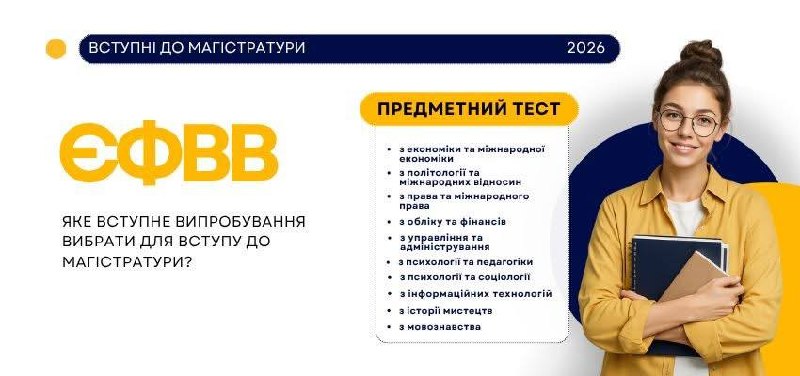 Зауважимо, що Порядком прийому на навчання для здобуття вищої освіти в 2026 році для вступу на магістерські програми вступники мають складати єдиний вступний іспит (ЄВІ) і проходити єдине фахове вступне випробування (ЄФВВ).