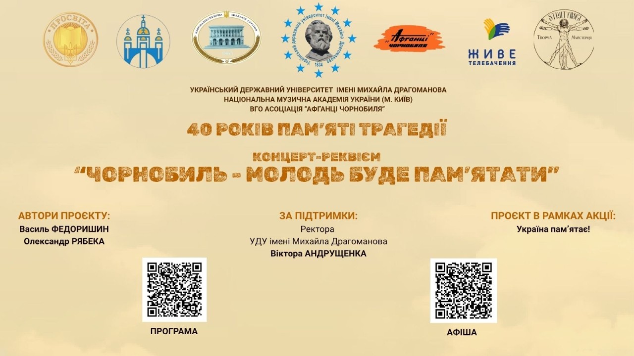 23 квітня у Патріаршому соборі Воскресіння Христового в Києві відбувся XXV Концерт-реквієм «Чорнобиль — молодь буде пам’ятати», приурочений до 40-х роковин Чорнобильської катастрофи. У молитовно-мистецькому заході взяли участь Отець і Глава УГКЦ Блаженніший Святослав та протосинкел Київської архиєпархії владика Йосиф Мілян, а також Надзвичайний і Повноважний Посол Китайської Народної Республіки в Україні Ма Шенкунь.
