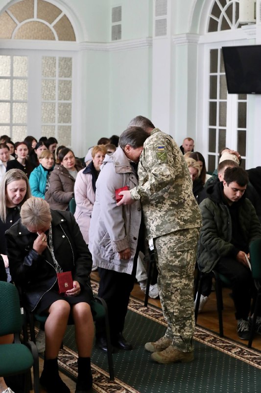 В ОВА зібралися дружини, діти і батьки загиблих захисників. Тримаються. Дуже рівно і дуже зібрано. За кожним орденом – імʼя, підрозділ і останній бій. А ще тиша, яка розриває простір.