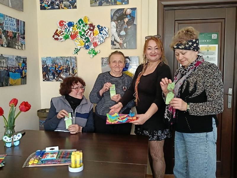 Для ВПО з Херсонщини також провели сеанс арттерапії з елементами казкотерапії та сторітелінгу. Жінки виготовляли паперові прикраси й закладки у вигляді метеликів та розповідали історії про комах.