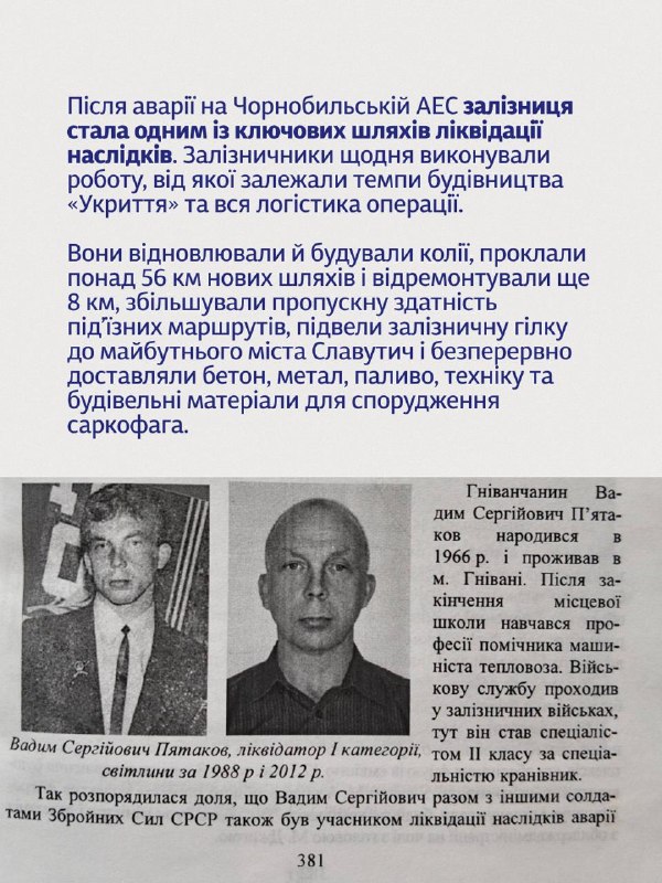 З історією та реальними спогадами залізничника-ліквідатора Пятакова Вадима ви можете ознайомитися на слайдах до цього допису.