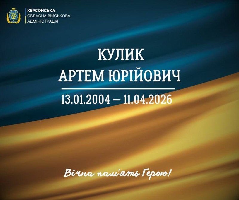 🕯 9.00 – хвилина мовчання за усіма полеглими у Війні за Незалежність України. 26.04.2026, Неділя | 14:16 Автор допису: Херсонська обласна військова адміністрація 🕯 9.00 – хвилина мовчання за усіма полеглими у Війні за Незалежність України. Херсонщина віддала останню шану відважному Герою, який повернувся з фронту на щиті. Старший лейтенант Артем Кулик поліг у бою на Запорізькому напрямку. Воїну навіки 22 роки… Щирі співчуття рідним та близьким! Вічна пам'ять Захиснику України! Пам’ятаємо кожного та кожну, хто віддав життя за Батьківщину! Джерело Друк / PDF