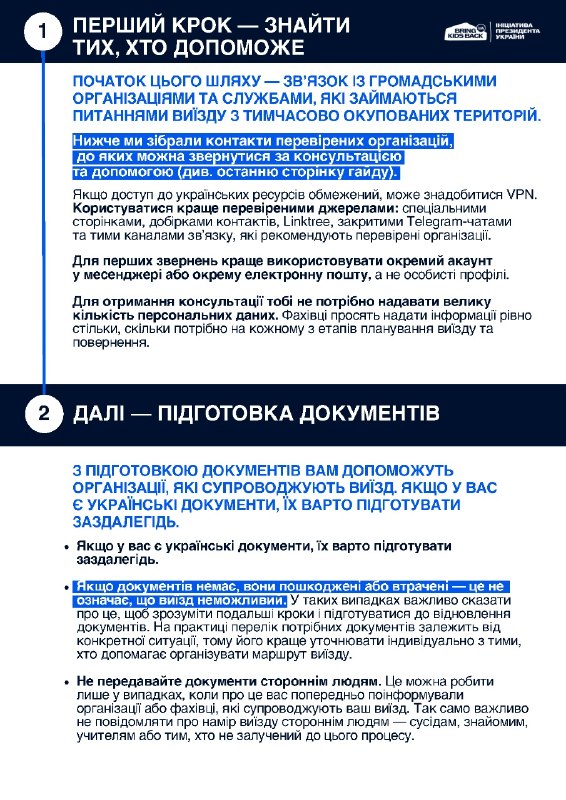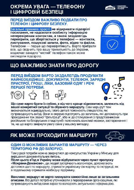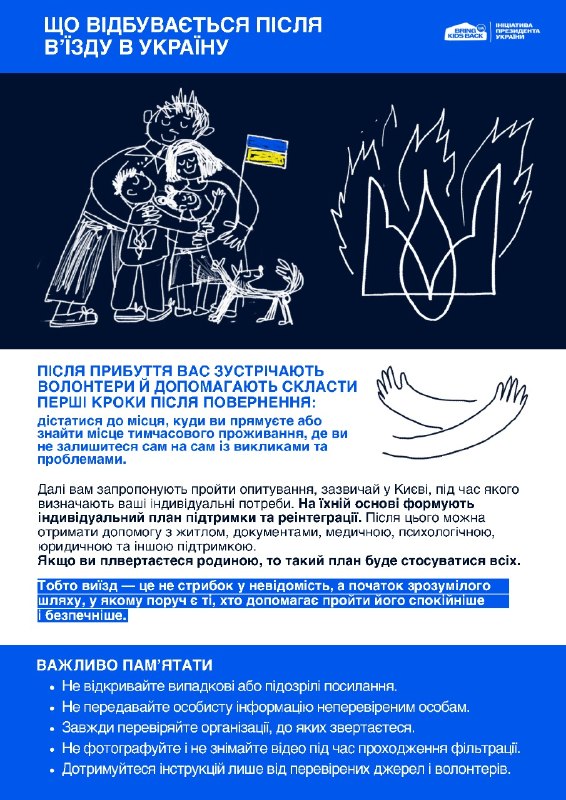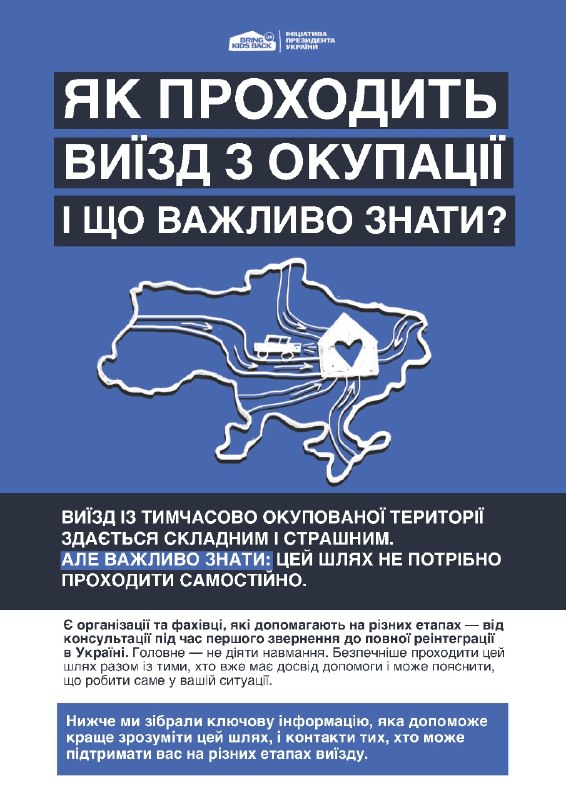 Ініціатива Президента України «Bring Kids Back UA» разом із громадськими організаціями забезпечує супровід на кожному етапі — від першої консультації до повної реінтеграції в Україні.