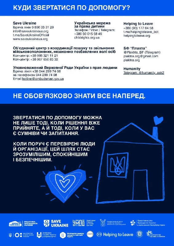 Звертатися по допомогу варто навіть тоді, коли рішення ще не прийняте остаточно, а ви лише маєте сумніви чи запитання. Виїзд із ТОТ — це не стрибок у невідомість, а початок зрозумілого шляху до безпечного життя.