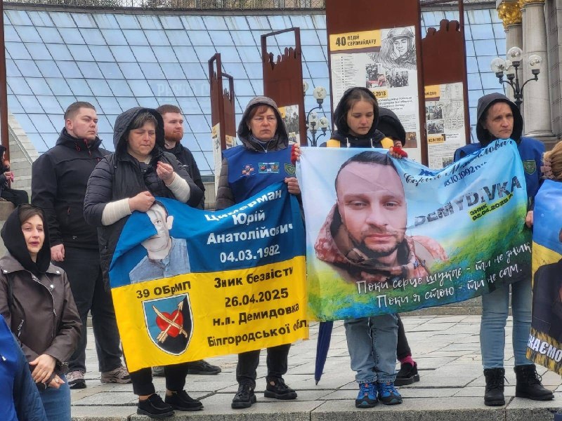 ▶️ На Майдан Незалежності родини принели світлини бійців 39 ОБрМП, 47 ОМБр, 33 ОШП, 225 ОШП та інших підрозділів, які воювали на Бєлгородському, Курському, Сумському, Донецькому та Запорізькому напрямках.