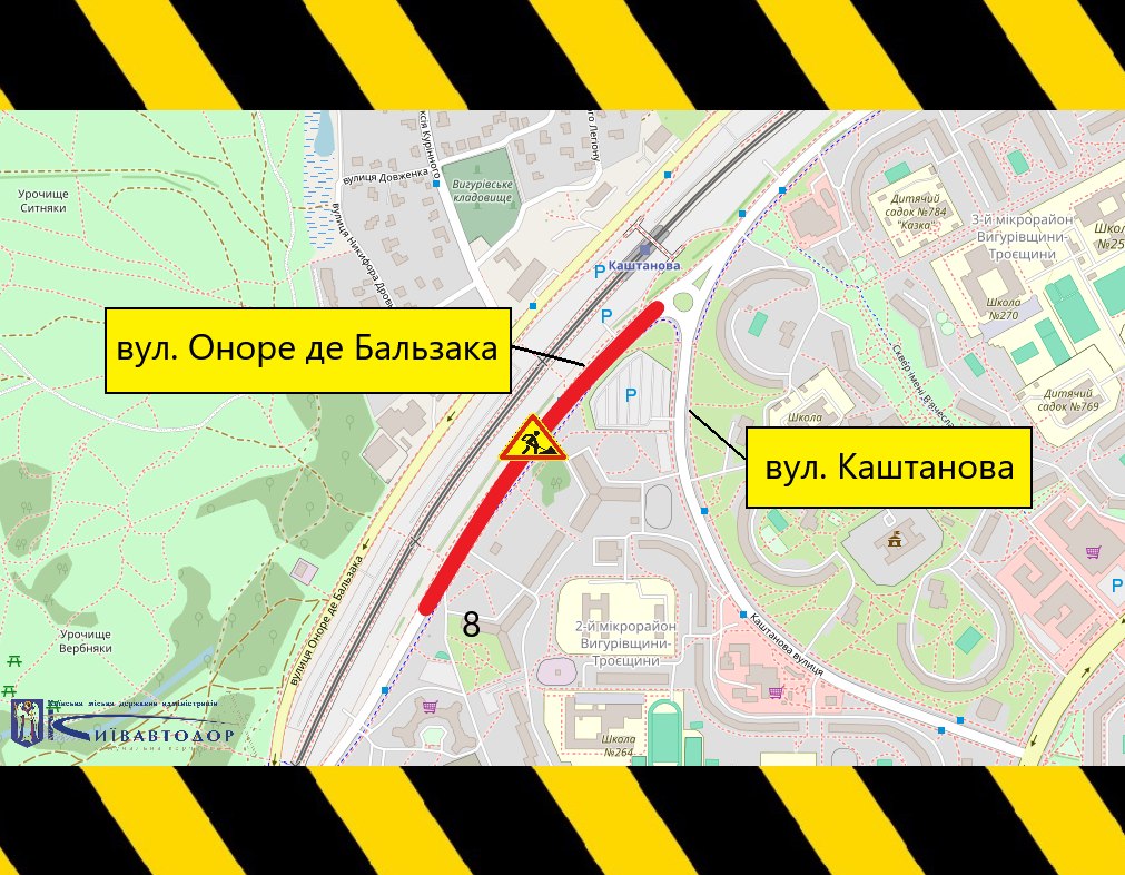 28 квітня частково обмежуватимуть рух вулицею Оноре де Бальзака в Деснянському районі столиці (+схема)