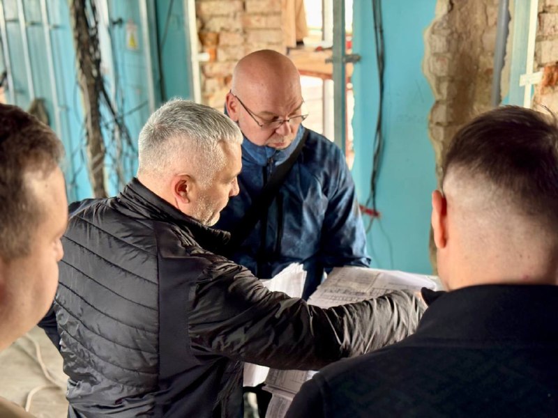 У ліцеї №1 спільно з директоркою закладу Тетяною Куленко оглянув будівництво укриття та хід ремонтних робіт після пошкодження покрівлі.