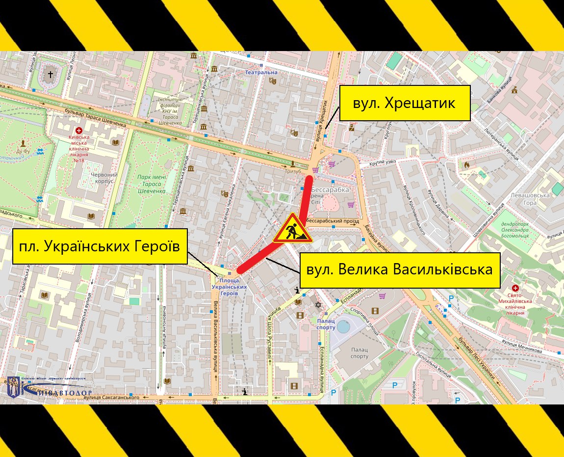 Починаючи з 22:00 29 квітня, працівники ШЕУ Шевченківського району ремонтуватимуть проїжджу частину на ділянці від площі Українських Героїв до вулиці Хрещатик в обох напрямках.
