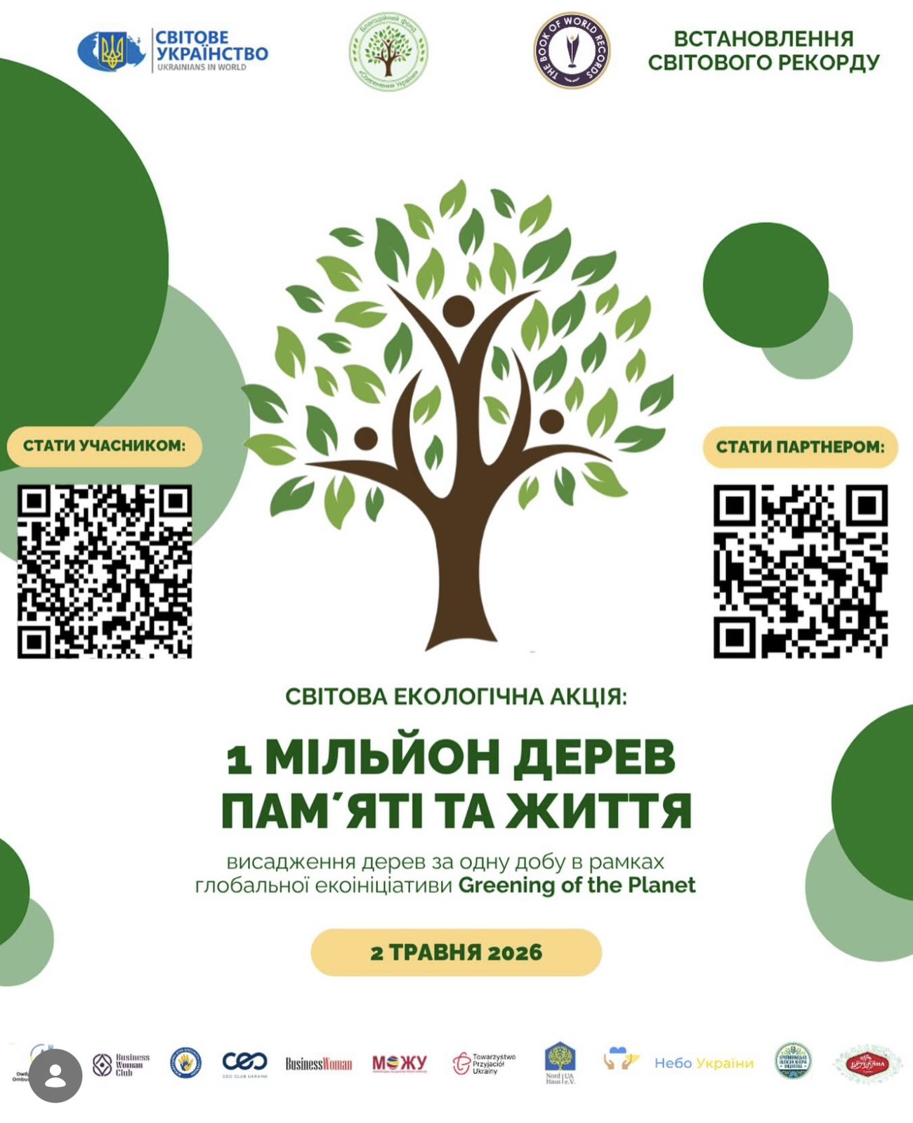 Організатори акції – благодійний фонд «Озеленення України» та громадська організація «Світове українство». У межах глобальної екоініціативи Greening of the Planet та проєкту «Озеленення України» вже висадили понад 55 мільйонів дерев у 141 країні світу.