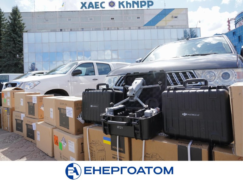 З нагоди підписання меморандуму керівництво та колектив Енергоатома передали чергову партію допомоги захисникам: 4 автомобілі, 14 БПЛА, 30 зарядних станцій, 6 генераторів і 6 терміналів Starlink. 🎁