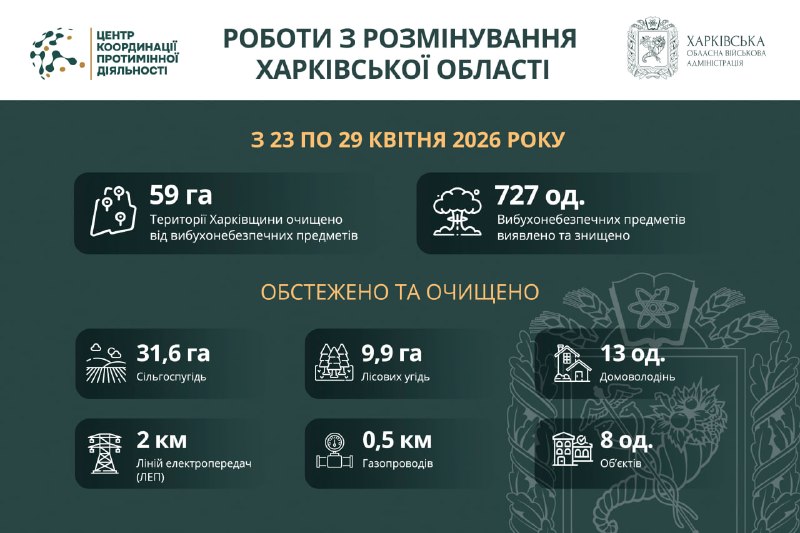 📍За минулий тиждень на Харківщині обстежили: