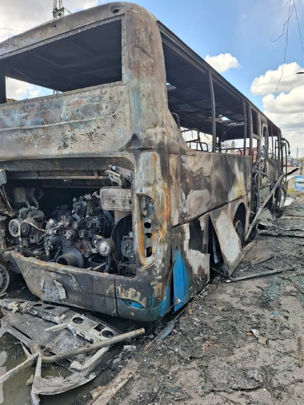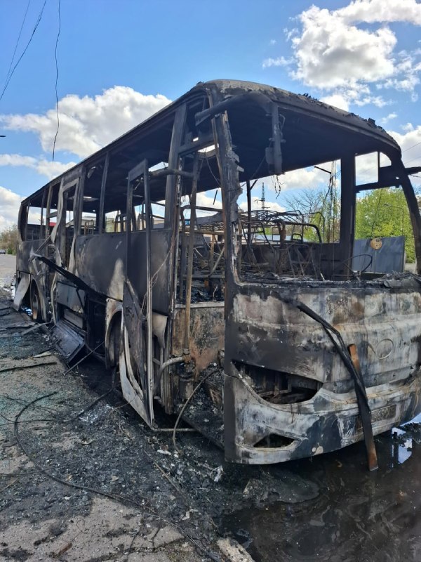 Медики прямували на виїзд у громаду, як раптом оголосили тривогу і пролунали вибухи. Медична команда встигла вчасно покинути транспорт — ніхто з них не постраждав. Автобус вигорів вщент.
